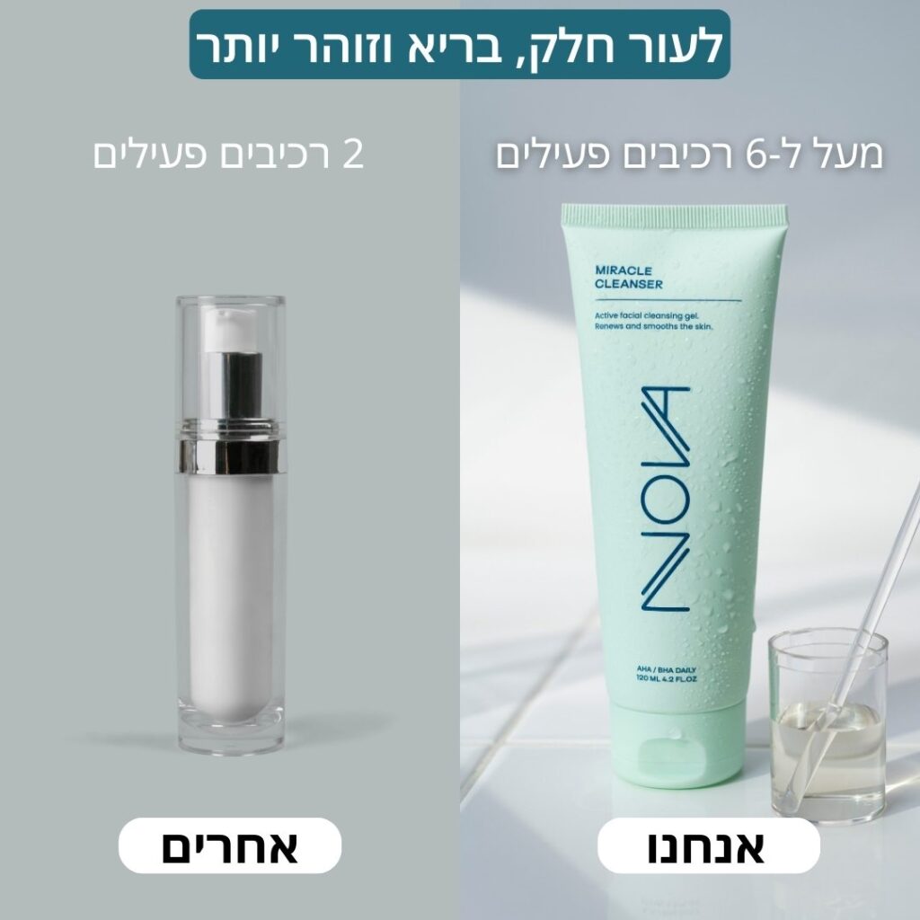 וכן, אנחנו יודעות שעל פניו כל תכשירי הניקוי לפנים  נראים אותו דברודווקא בגלל זה, הקדשנו בנובה תשומת לב מיוחדת לפיתוח הנוסחה הייחודית שלנו; נוסחה שמתבססת מעל ל-6 רכיבים עוצמתיים לניקוי העור, טיפול בפצעונים והבהרתם